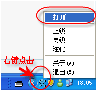 如果您安裝的是獨(dú)立客戶端模式,則在登陸后,將在桌面的右小角有一個(gè)kf000在線客服系統(tǒng)的圖標(biāo),鼠標(biāo)右鍵點(diǎn)擊小圖標(biāo),選擇“打開(kāi)”就進(jìn)入客服端監(jiān)控窗口。