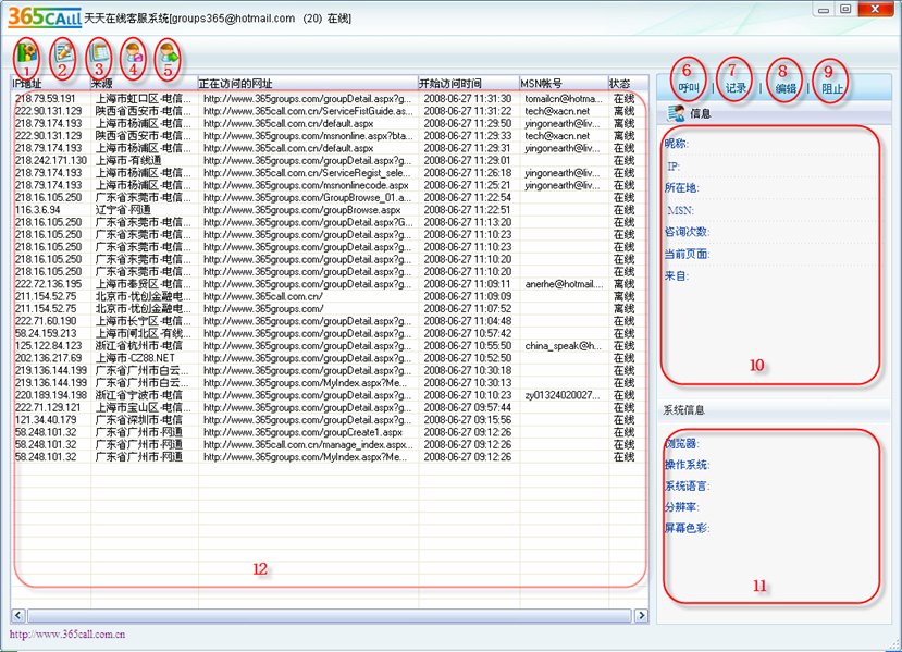 11- 訪客操作系統(tǒng)信息欄:自動采集的訪客操作系統(tǒng)信息;