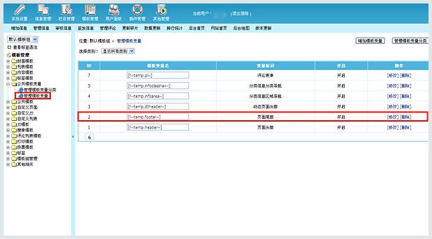 • 首先獲取在線(xiàn)客服安裝代碼,登陸帝國(guó)cms后臺(tái),進(jìn)入模板管理》公共模板變量》管理模板變量, 找到footer模板,點(diǎn)擊“修改”,將在線(xiàn)客服代碼復(fù)制粘貼到編輯框中的合適位置,然后點(diǎn)擊提交。