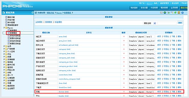 • 首先獲取在線(xiàn)客服安裝代碼,然后登陸phpcms后臺(tái),進(jìn)入模板風(fēng)格》phpcms 管理模板,找到頁(yè)尾 footer.html,點(diǎn)擊“修改”,將在線(xiàn)客服代碼復(fù)制粘貼到編輯框中的合適位置,點(diǎn)擊保存。