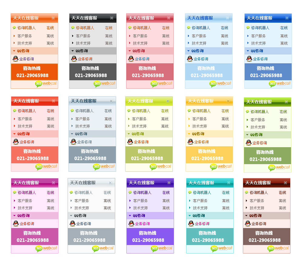 15色系浮動列表效果圖:
